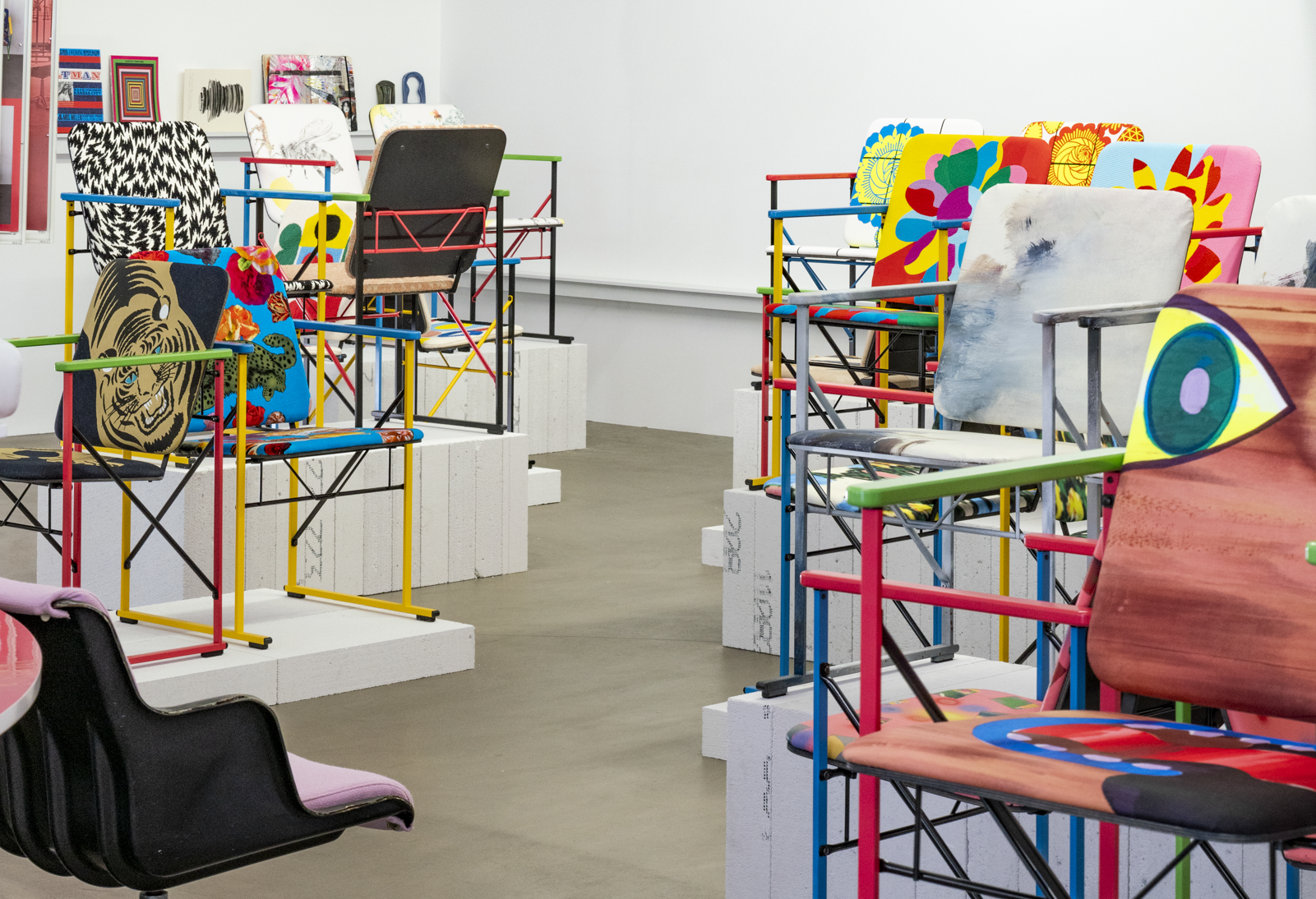 A cross generational group of 14 international designers and artists has contributed to this playful lineup of 28 chairs which are now offered for sale as individual art objects & design pieces in the upcoming live auction.